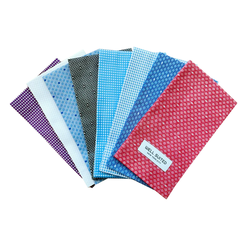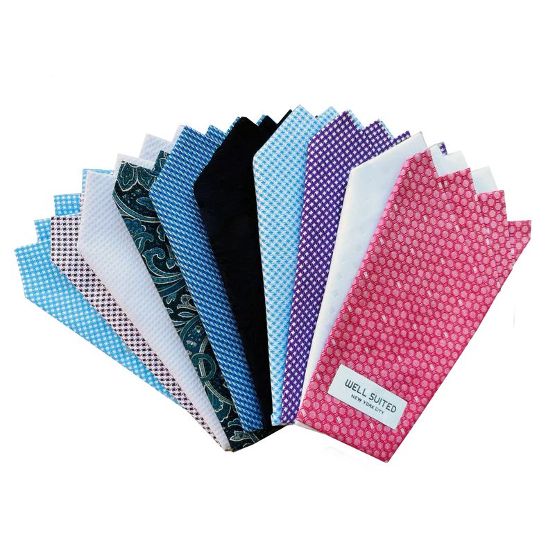 True to it’s inspiration, Well Suited pocket squares are carefully handmade in New York City. Give your suit, jacket or tuxedo a chic flair with the ultimate pocket square. Cotton Pique colors are 100% Italian cotton, Harlequin and Jacquard are made with Italian silk blend. One size fits most. We offer custom Monogramming. Inquire on Contact Us page.